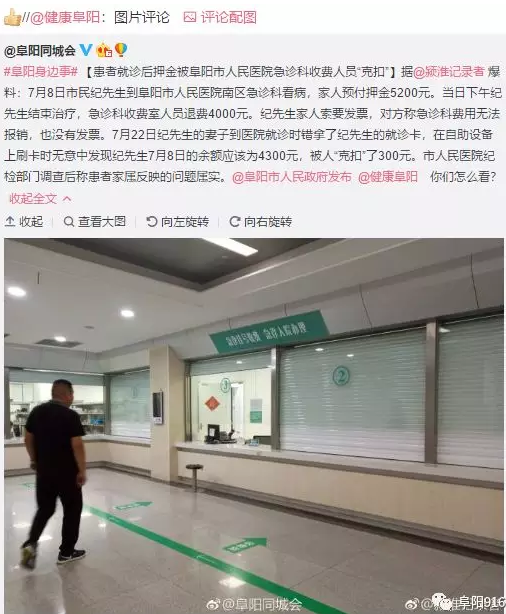 患者就诊后押金被医院“克扣”?阜阳市卫计委调查情况属实!