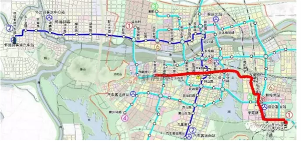 安庆地铁1号线:起自安庆西高铁站,沿规划新206国道至北部新城,途经中兴大街、港口路至环城东路。
