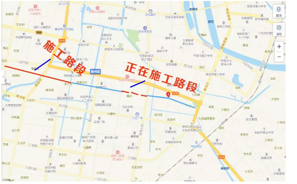 颍南路地处主城区和城南新区的过渡地带,沿路分布着多个小区、学校等,并靠近城南各个大型商业综合体,人流量和车流量都比较大。若颍南路全路段贯通后,将对缓解阜城南北干道交通压力起到十分重要的作用。同时也方便了城区东西方向的交通。