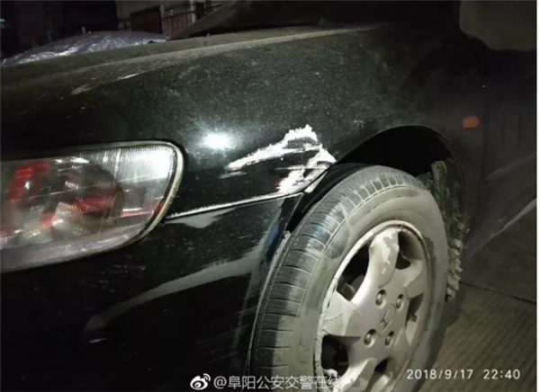 阜阳市交警一大队接警后赶赴现场,看到该车辆左前角有新鲜撞击痕迹,司机刘某某(1963年出生,阜阳市颍州区居民)语无伦次,一身酒气。民警随即将其带往医院抽血送检。