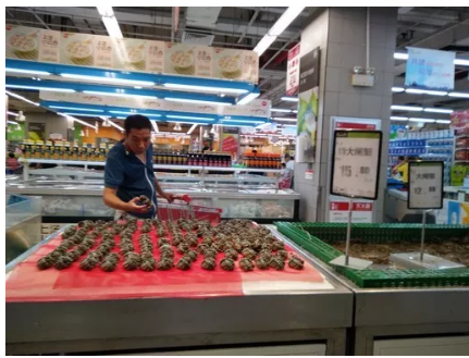 永辉超市的螃蟹价格则较为亲民,市民可以有两种选择:捆绑好的螃蟹较大,价格为15.8元/只;散养的螃蟹为12.8元/只。