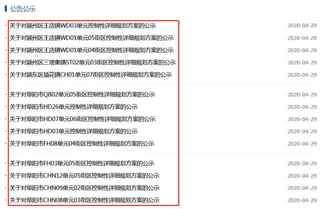 4月29日阜阳市自然资源和规划局公布市区14个街区/单位控制性详细规划方案涉及颍州、城南、颍东、颍泉、阜合园区总面积达1011.86公顷约15177.9亩NO.1阜阳市CHN08单元03街区街区位置: